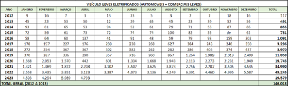 No primeiro quadrimestre de 2023, foram nada menos do que 19.579 veículos leves eletrificados vendidos, um aumento de 51% sobre o mesmo período do ano passado (14.989).